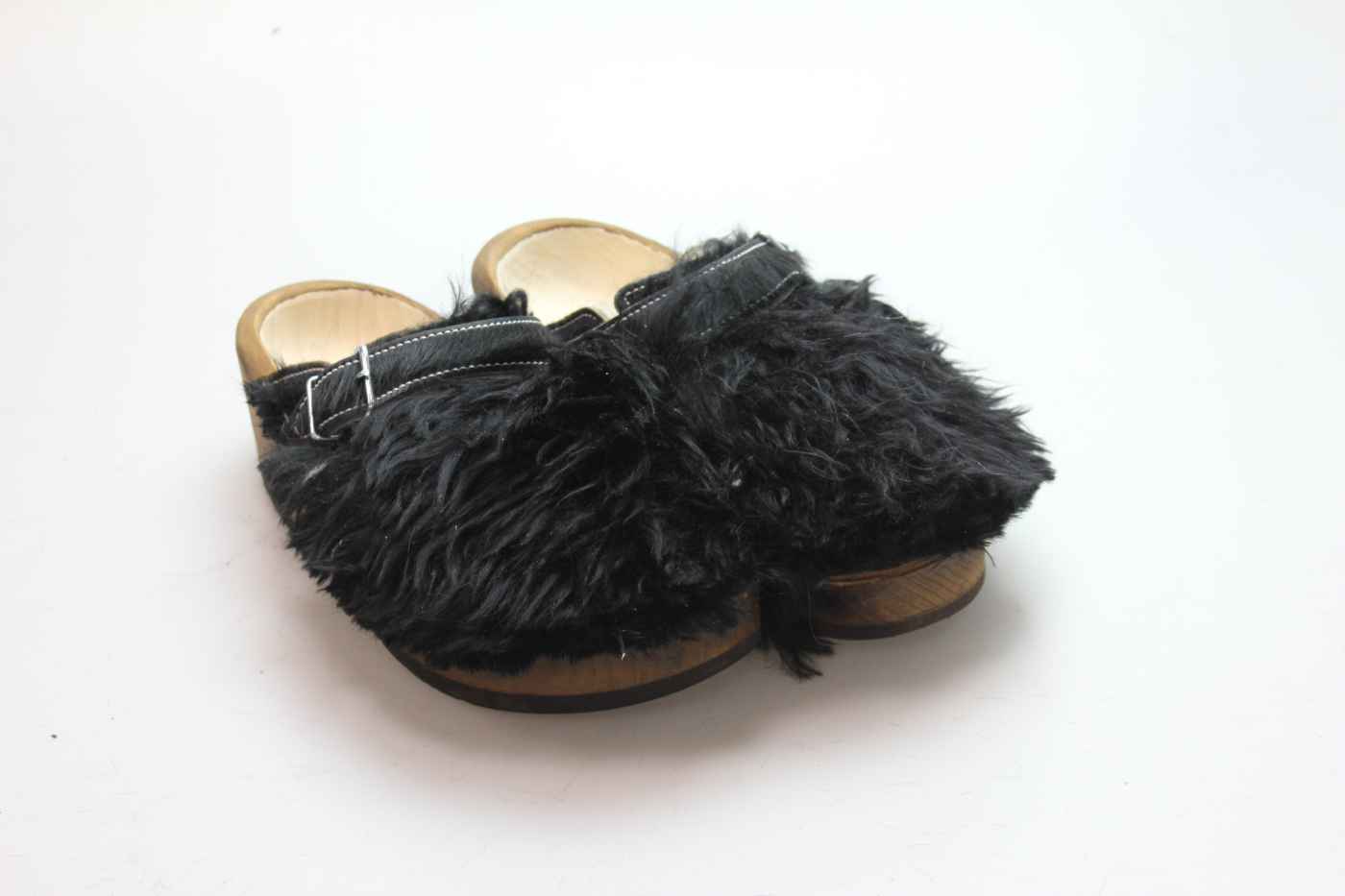 Der Holzschuh, mit dem Sie sicherlich auffallen werden. Außen verwenden wir für dieses Modell Ziegenfell. Für zusätzichen Komfort ist er auch mit Schaffell gefüttert. Im Bild sehen Sie das Unikat, welches Sie erhalten.
