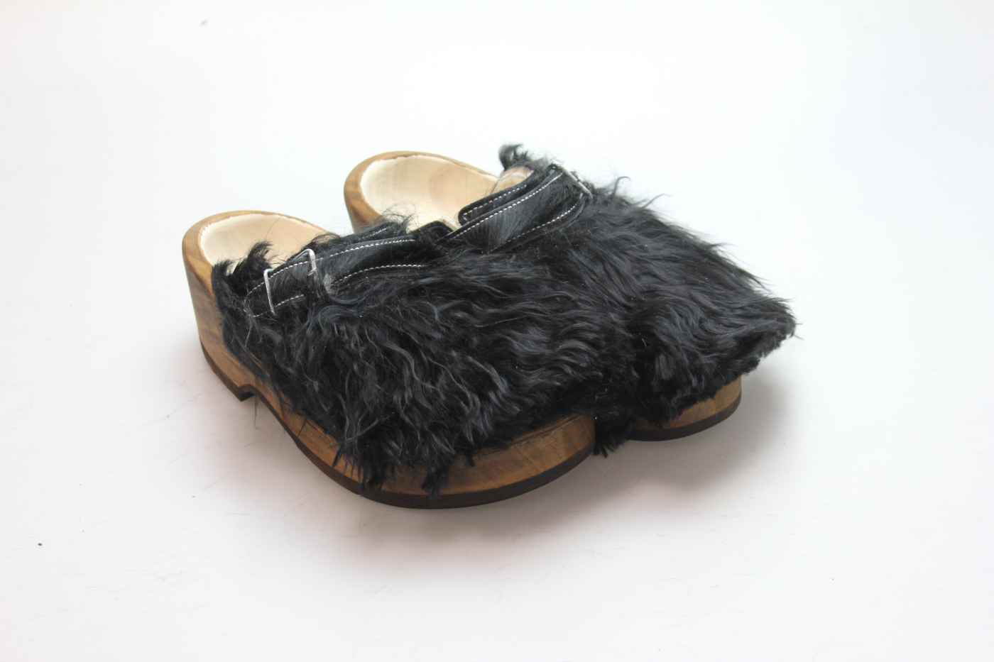 Der Holzschuh, mit dem Sie sicherlich auffallen werden. Außen verwenden wir für dieses Modell Ziegenfell. Für zusätzichen Komfort ist er auch mit Schaffell gefüttert. Im Bild sehen Sie das Unikat, welches Sie erhalten.