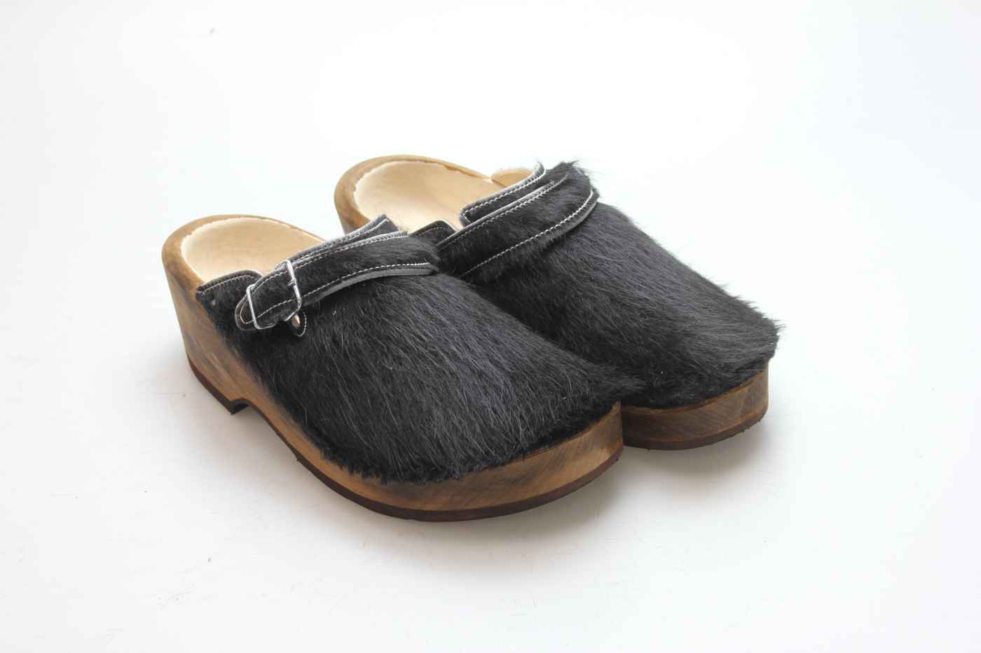 Dieser Holzschuh ist mittels einer Schnalle am Rist/Span verstellbar und ist mit einem Rindsleder gefüttert. Das Obermaterial ist echtes Rindfell. Im Bild sehen Sie das Unikat, welches Sie erhalten.
