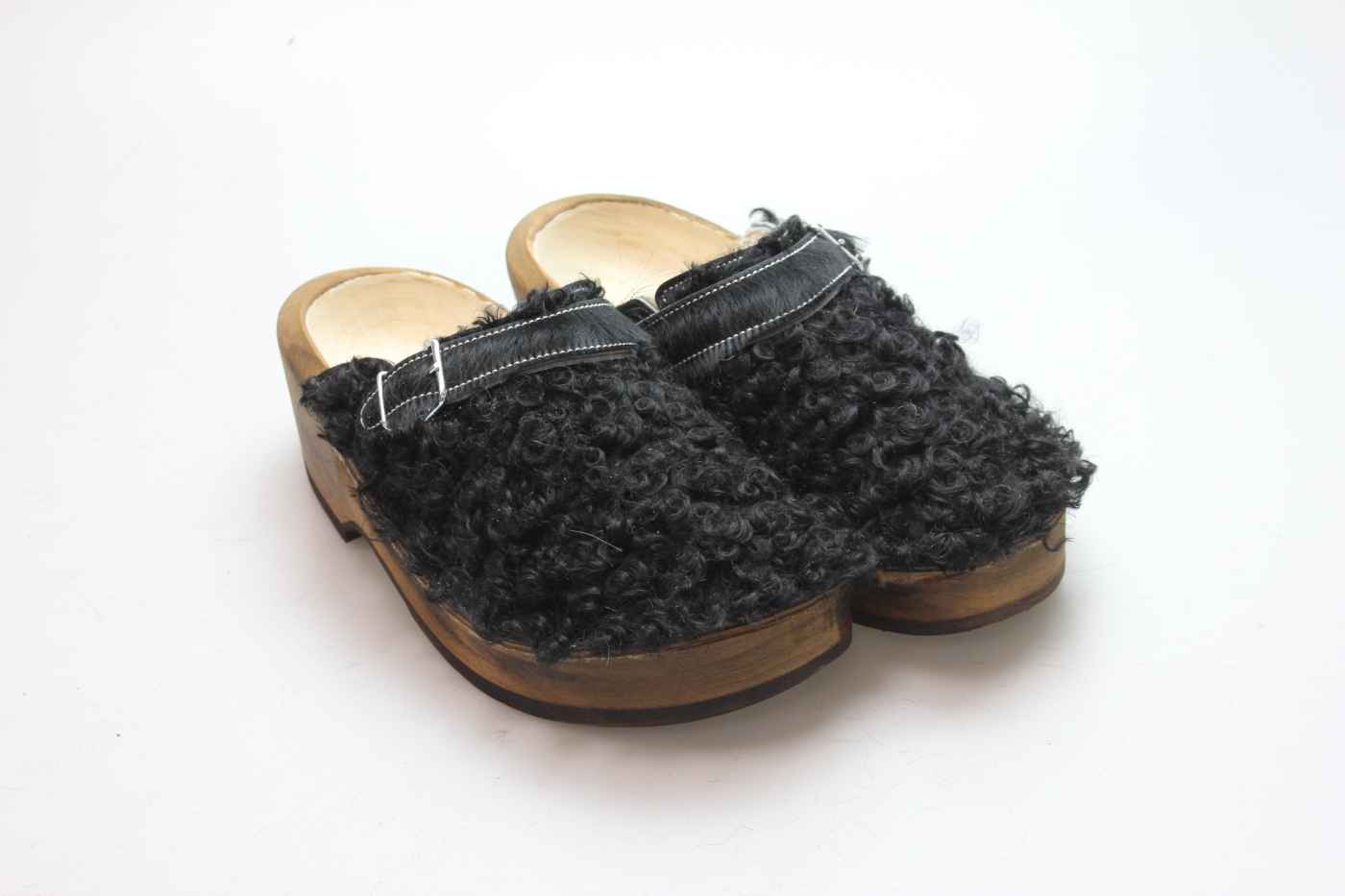 Der Holzschuh, mit dem Sie sicherlich auffallen werden. Außen verwenden wir für dieses Modell Ziegenfell. Für zusätzichen Komfort ist er auch mit Schaffell gefüttert. Im Bild sehen Sie das Unikat, welches Sie erhalten.