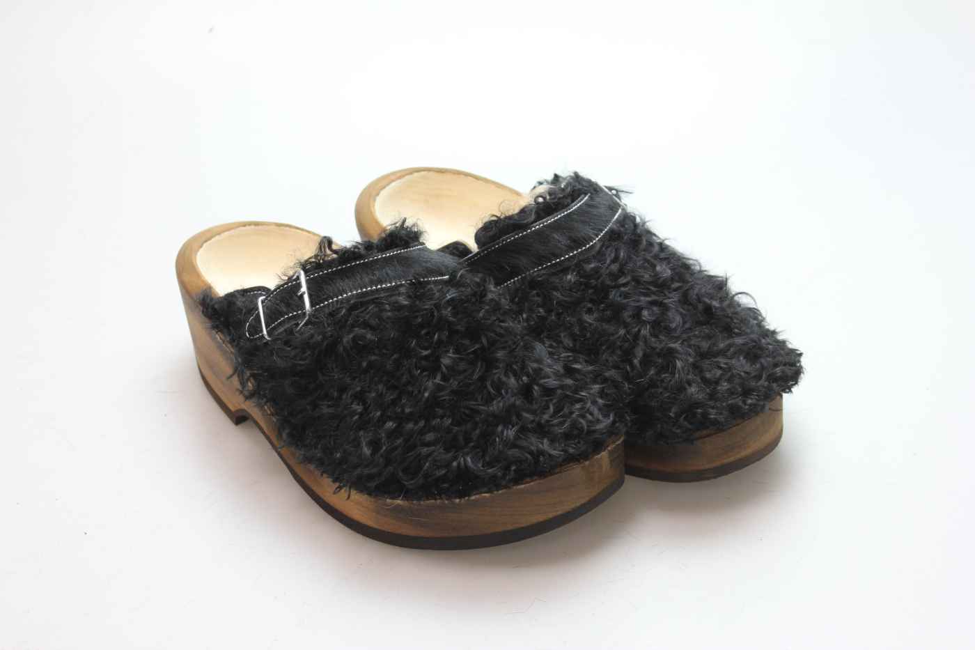 Der Holzschuh, mit dem Sie sicherlich auffallen werden. Außen verwenden wir für dieses Modell Ziegenfell. Für zusätzichen Komfort ist er auch mit Schaffell gefüttert. Im Bild sehen Sie das Unikat, welches Sie erhalten.