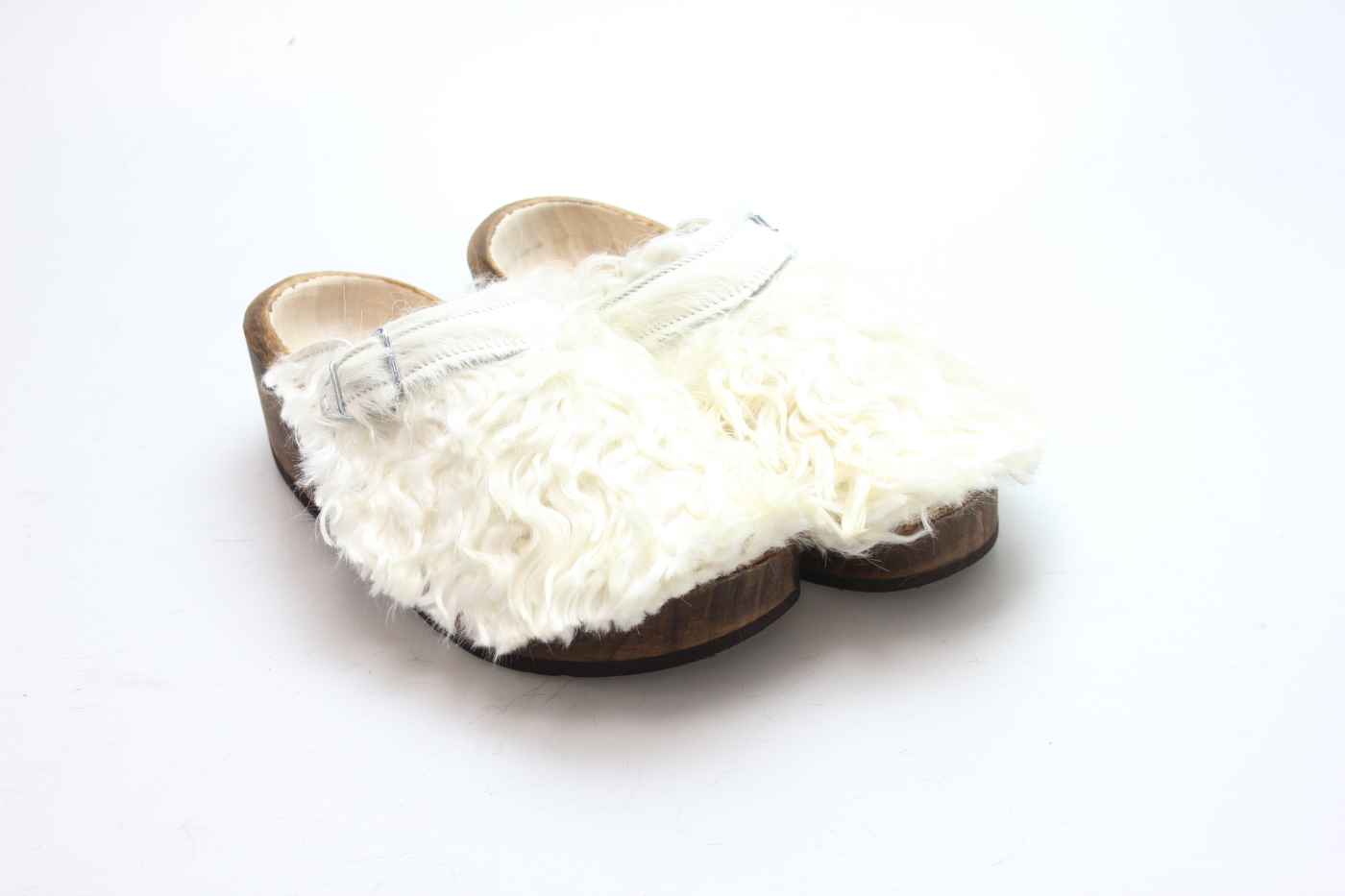 Der Holzschuh, mit dem Sie sicherlich auffallen werden. Außen verwenden wir für dieses Modell Ziegenfell. Für zusätzichen Komfort ist er auch mit Schaffell gefüttert. Im Bild sehen Sie das Unikat, welches Sie erhalten.