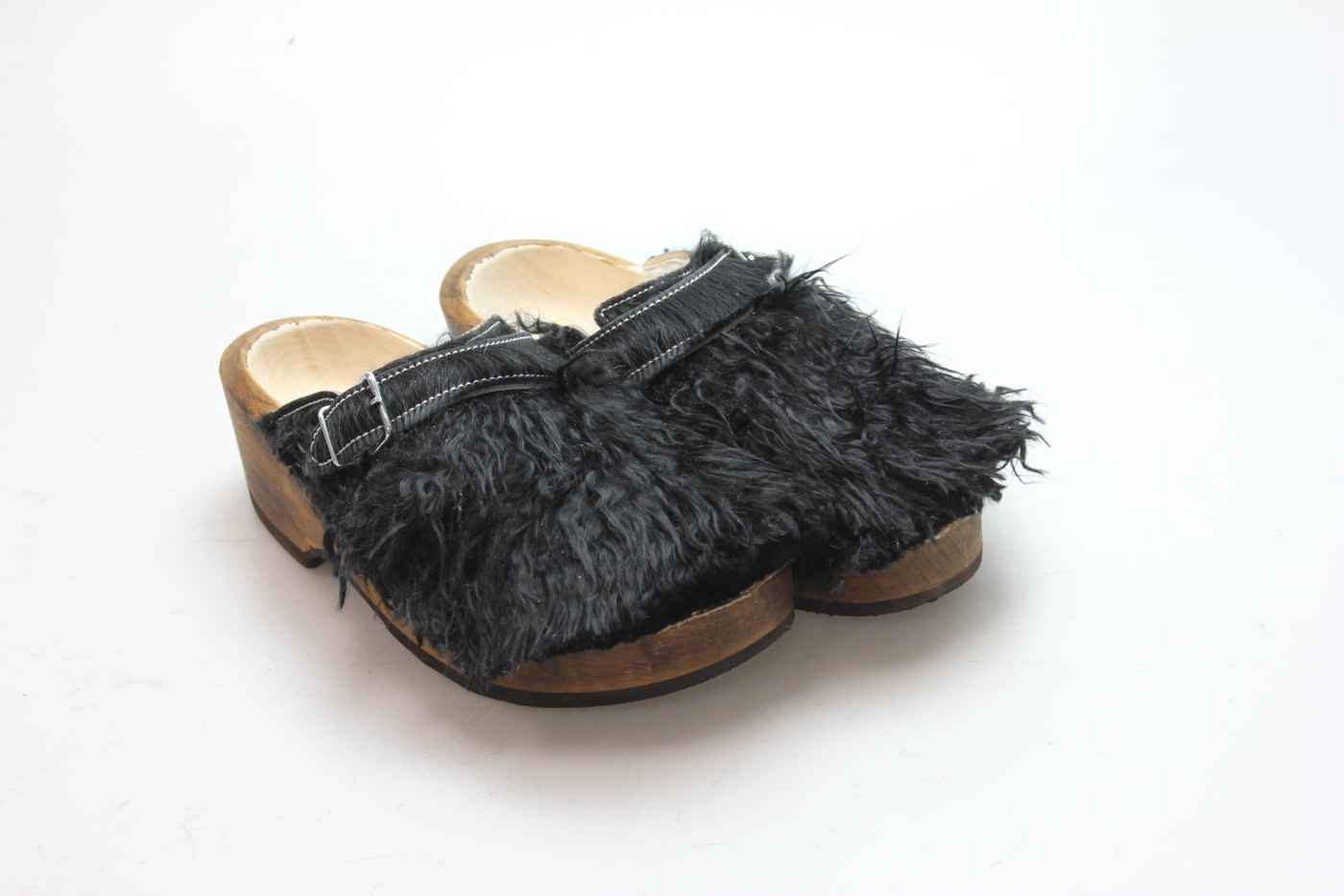 Der Holzschuh, mit dem Sie sicherlich auffallen werden. Außen verwenden wir für dieses Modell Ziegenfell. Für zusätzichen Komfort ist er auch mit Schaffell gefüttert. Im Bild sehen Sie das Unikat, welches Sie erhalten.