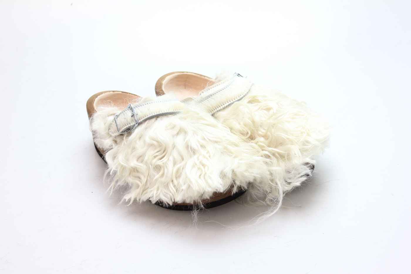 Der Holzschuh, mit dem Sie sicherlich auffallen werden. Außen verwenden wir für dieses Modell Ziegenfell. Für zusätzichen Komfort ist er auch mit Schaffell gefüttert. Im Bild sehen Sie das Unikat, welches Sie erhalten.