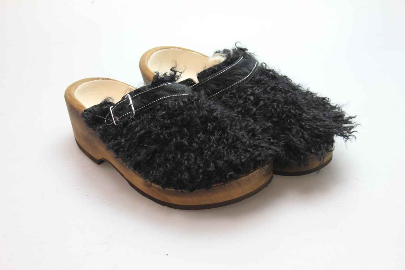 Der Holzschuh, mit dem Sie sicherlich auffallen werden. Außen verwenden wir für dieses Modell Ziegenfell. Für zusätzichen Komfort ist er auch mit Schaffell gefüttert. Im Bild sehen Sie das Unikat, welches Sie erhalten.