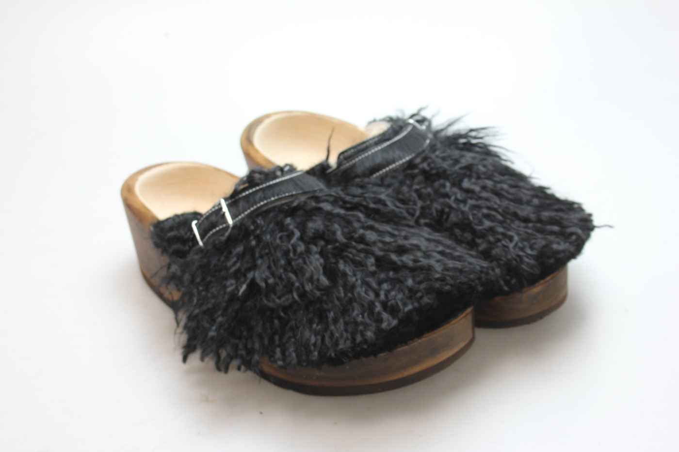 Der Holzschuh, mit dem Sie sicherlich auffallen werden. Außen verwenden wir für dieses Modell Ziegenfell. Für zusätzichen Komfort ist er auch mit Schaffell gefüttert. Im Bild sehen Sie das Unikat, welches Sie erhalten.